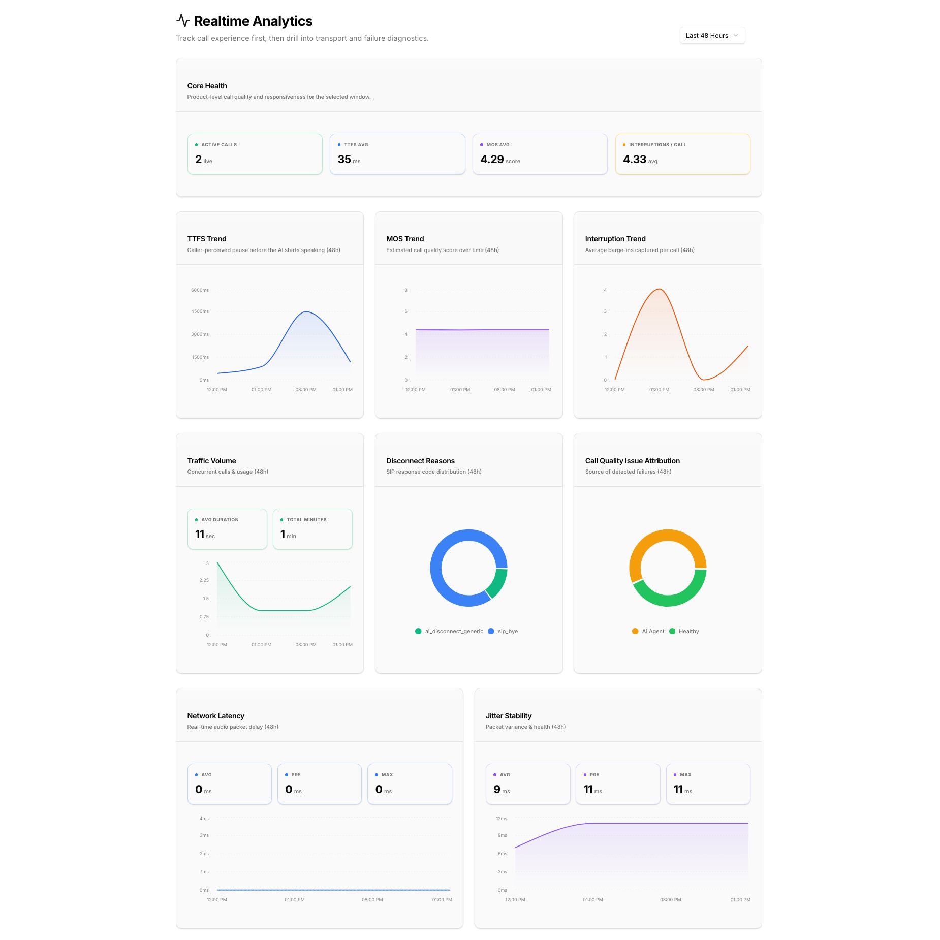 Track TTFS, interruption capture, and conversational timing so optimization maps to caller experience, not just backend metrics.